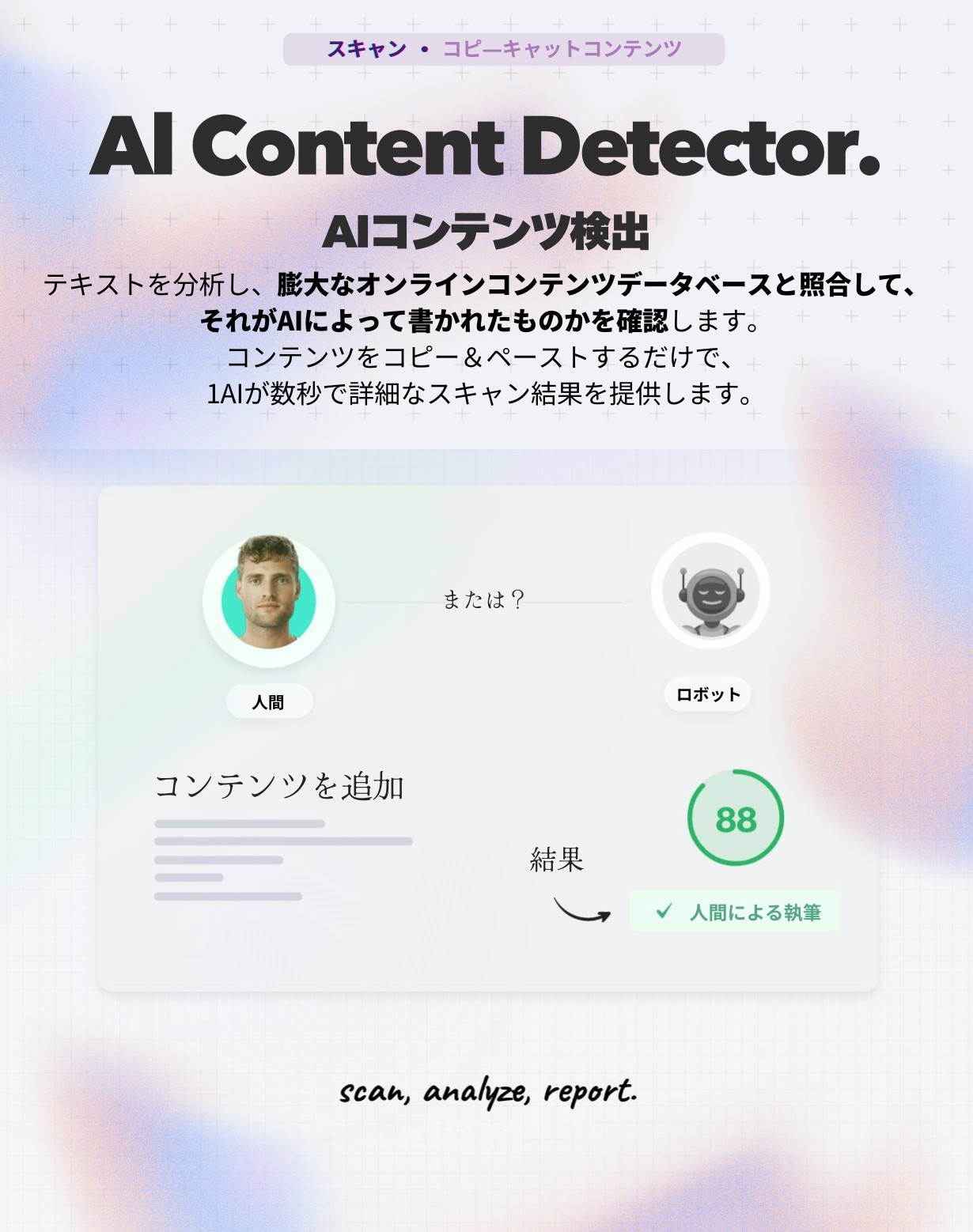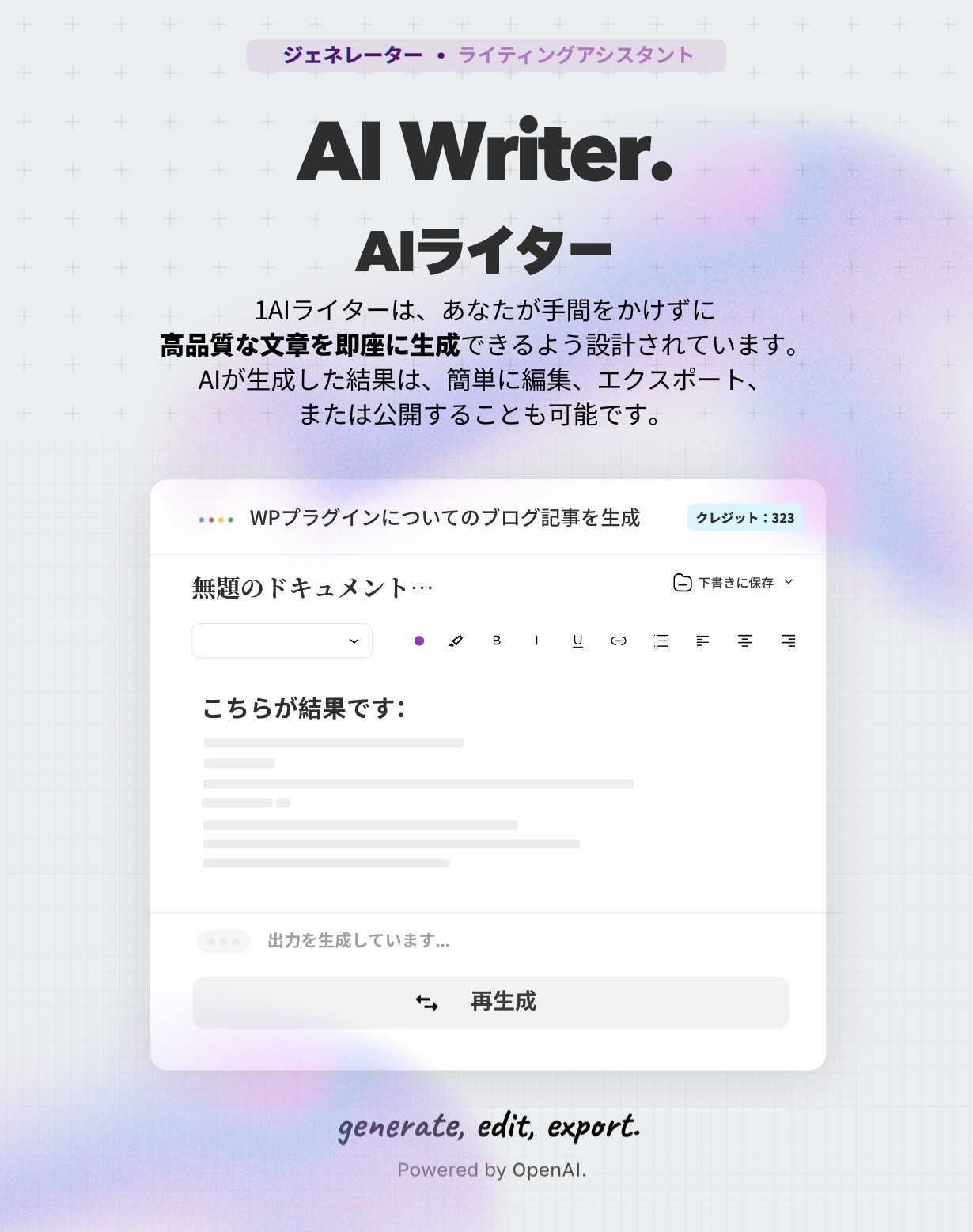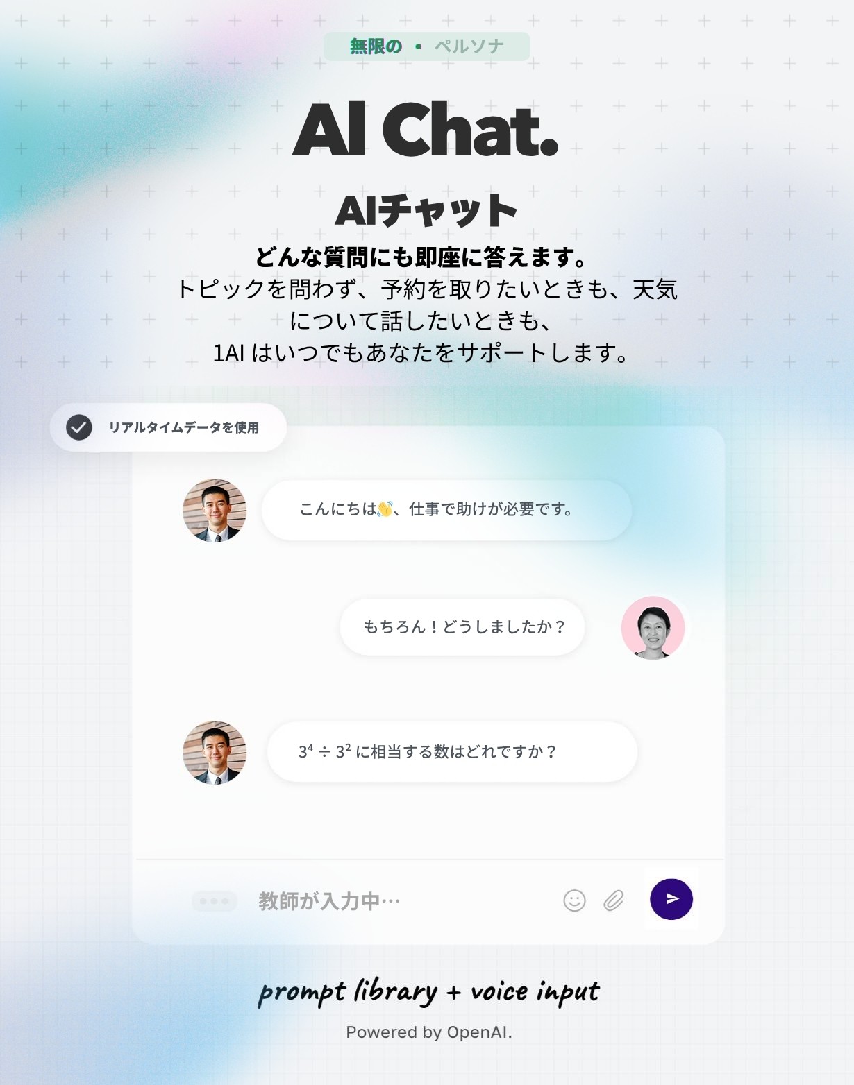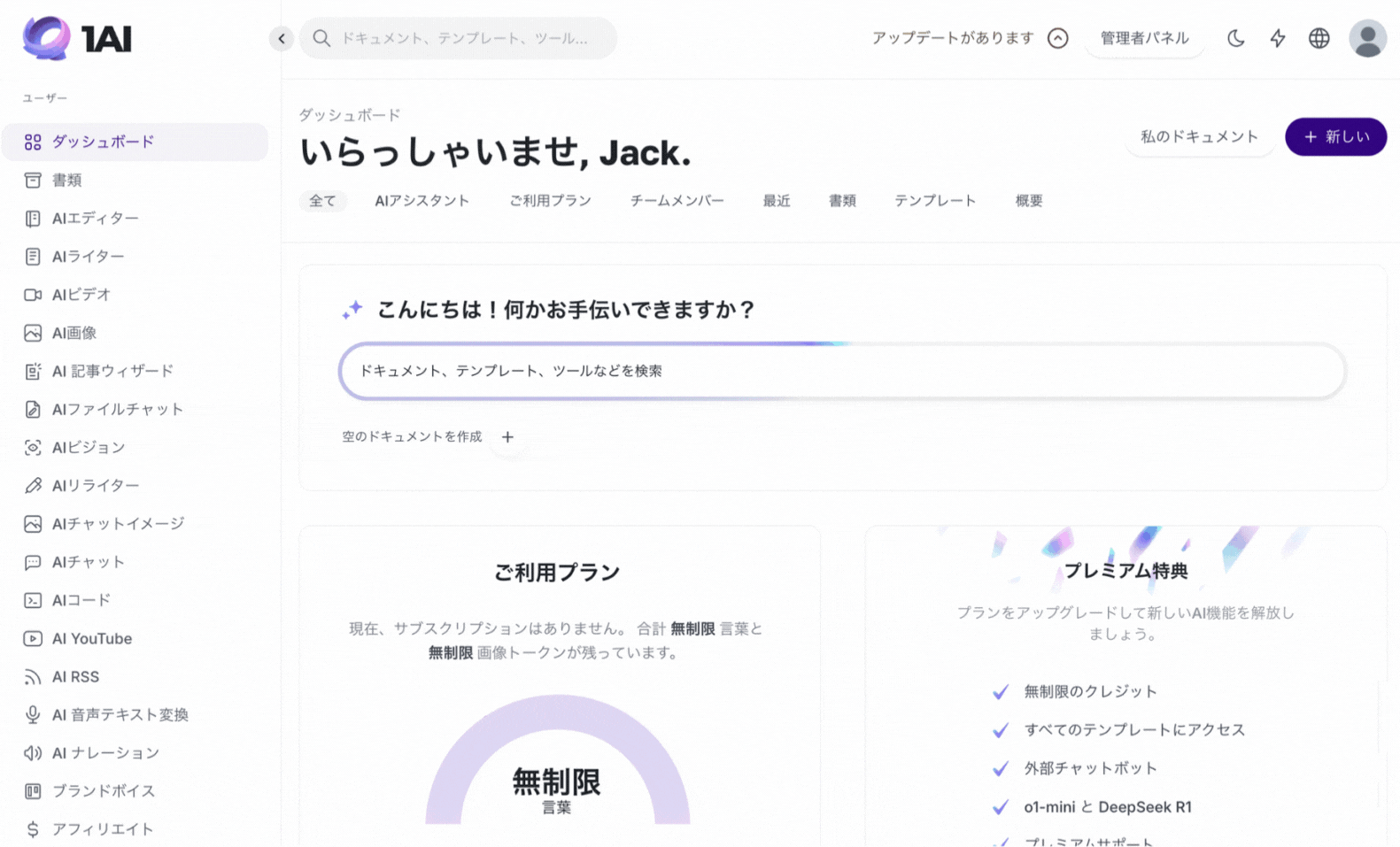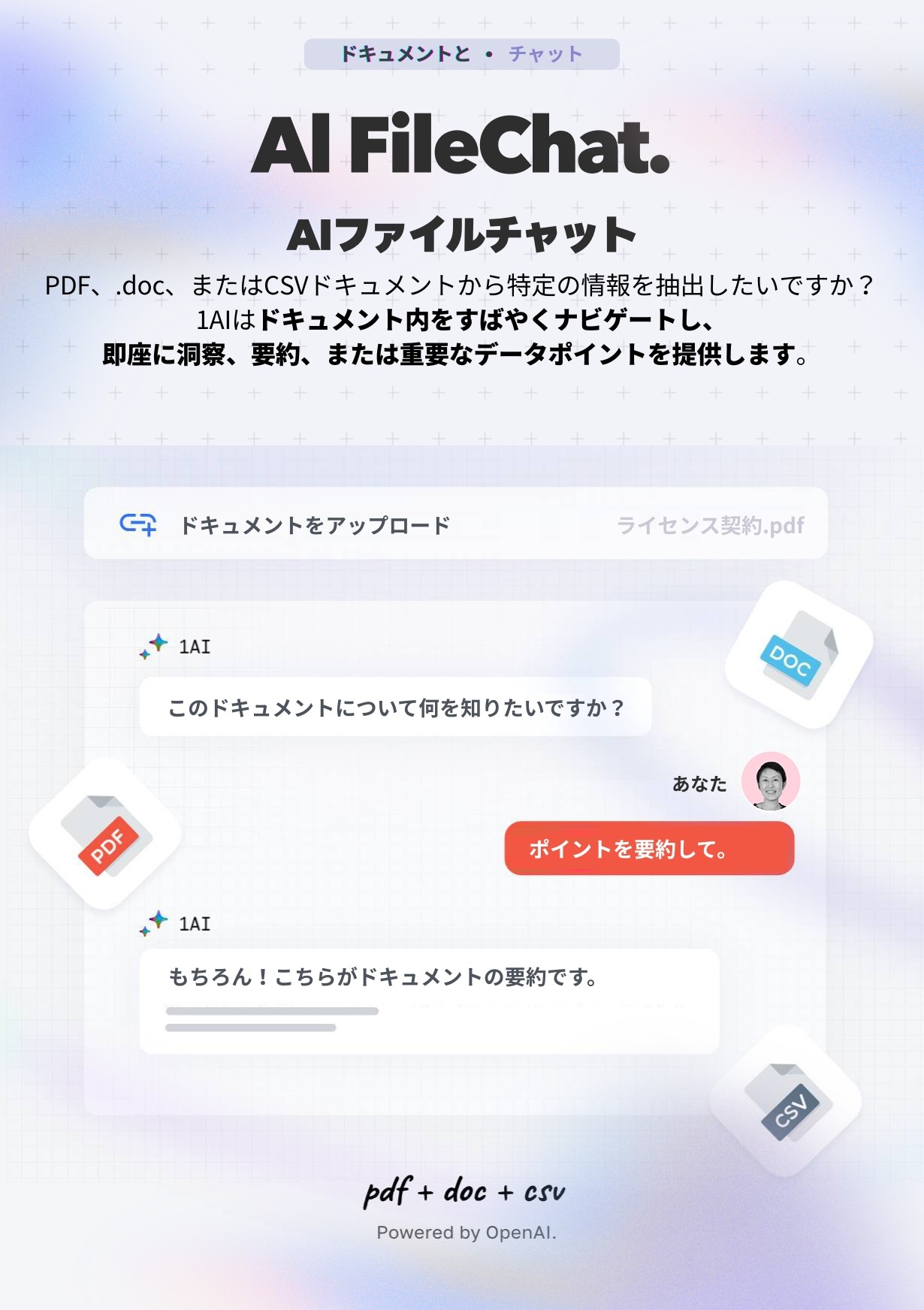 コンテンツの作成も、製品の開発も、タスクの自動化も、 1AI があれば実現に必要なすべてがすぐに手に入ります。